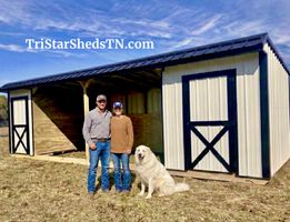 "I can’t begin to find a way to describe how much we love our tiny barn from TriStar Sheds!! We knew we wanted a quality product and needed to know it would fit our budget and needs. We had a delivery delay due to a crazy snow storm but TriStar stayed in contact and we got it January 21st a couple weeks before our lambs were born. We made a feed room out of the tack room and it has made our life so easy! Can’t say enough positive things about the construction, not flimsy and exceeded our expectations. Highly recommend." -Bill and Louella Dobbs
